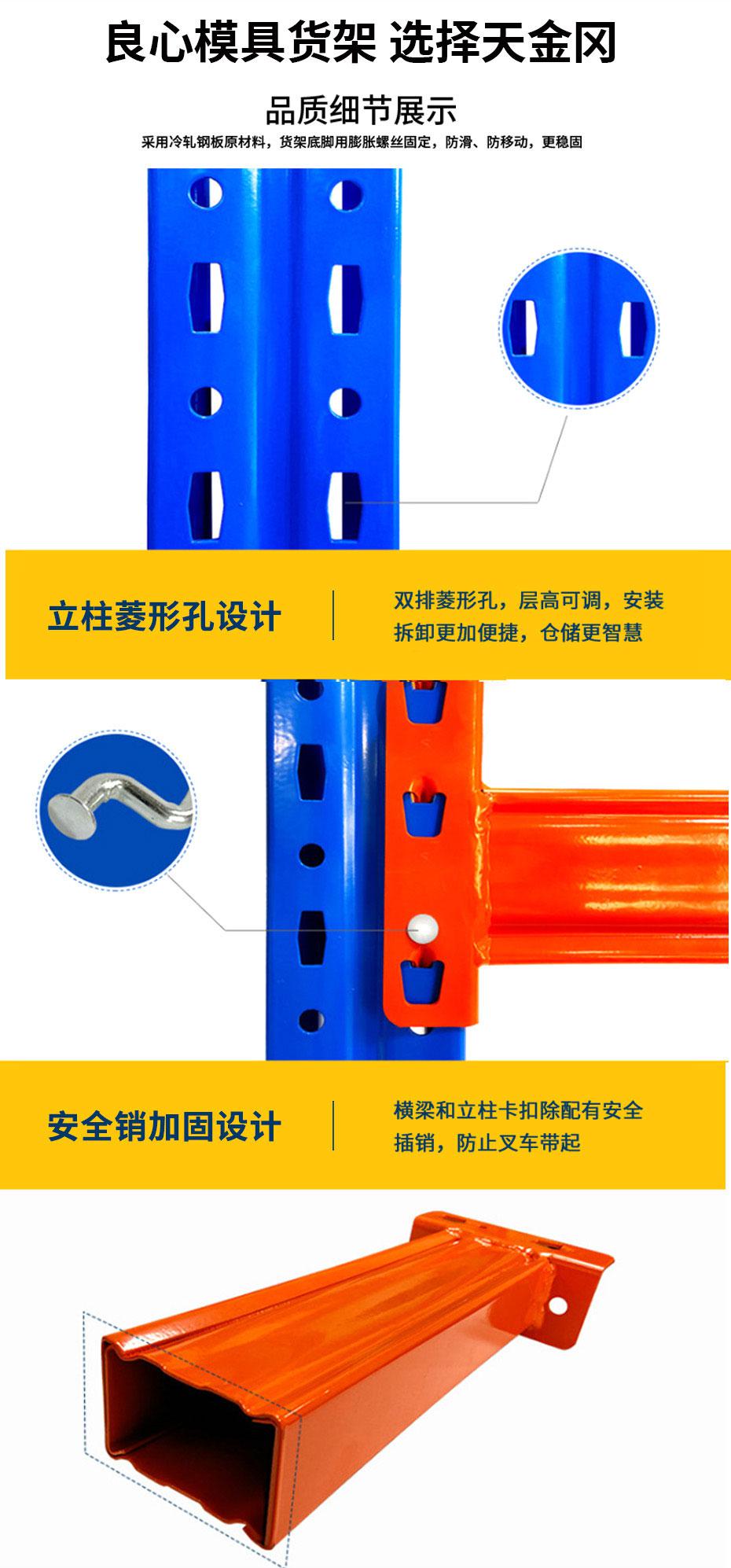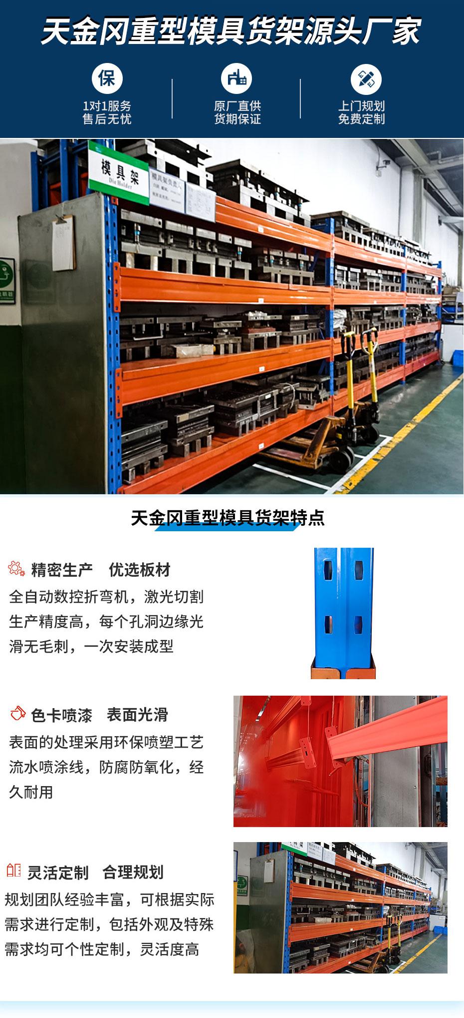 模具貨架,存放打噸位模具,可根據實際需求進行定製,包括外(wài)觀及特殊需(xū)求均可個(gè)性定製,靈活度高昆山天金(jīn)岡金屬製品有限公司(sī)是一家科技(jì)型高(gāo)新技術企業,18年專注提供重(chóng)型貨架、AGV貨架、智能貨架、立體庫貨(huò)架的規劃、設計、製造、安裝等整體服務。有需(xū)要歡迎谘(zī)詢13616265047(微信同號)